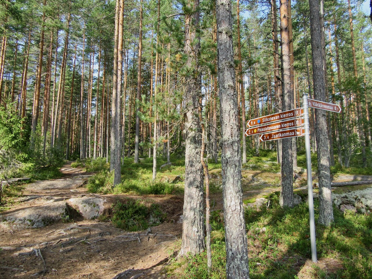 Pikkulatosaaren kierros – This 2.8-km (1.7-mile) loop begins at the same trailhead as the longer loop. It gives you a hint of the open bogs and pine forests, with a campfire site along the way.